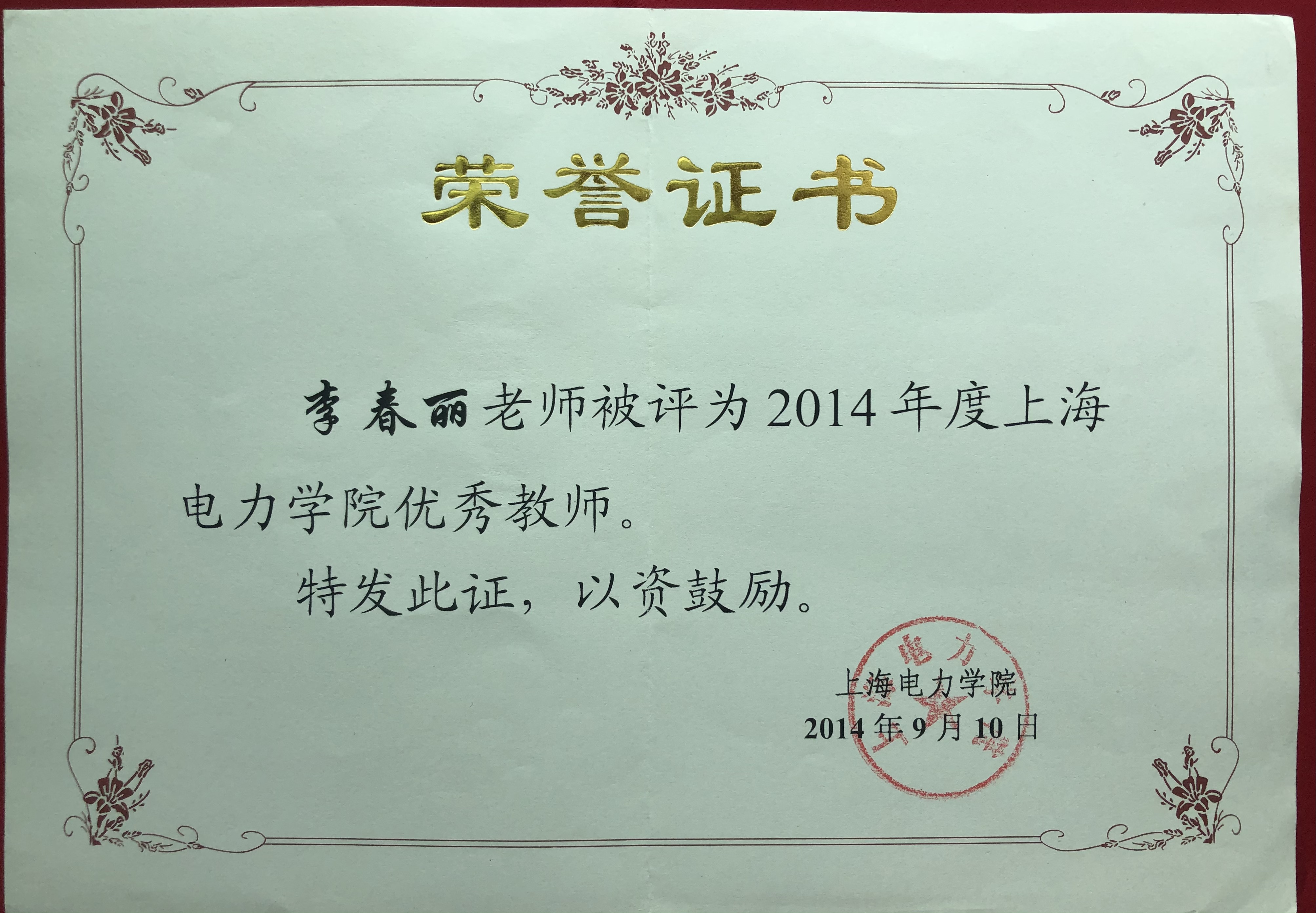 图7李老师获奖永利集团88304官网优秀教师