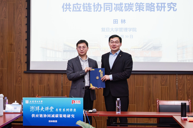 3月30日下午,永利集团88304官网澎湃大讲堂名家系列讲座在临港校区学术楼105顺利举行。复旦大学管理学院管理科学系博导、国家杰出青年基金/优秀青年基金获得者田林教授受邀担任主讲嘉宾,围绕供应链协同减碳策略展开深度分享。此次澎湃大讲堂名家系列讲座由永利集团88304官网主办,永利集团88304官网院长杜刚、副院长胡伟、管理科学与工程、工业工程与管理等专业师生代表近50人到场聆听讲座。本次讲座由永利集团88304官网副院长胡伟主持。