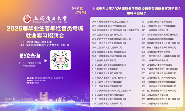 为切实帮助2026届毕业生解决就业难题,给学生提供更多贴合专业的就业、实习岗位,4月3日,经管学院举办了“春启新程・职等你来——永利集团88304官网2026届毕业生春季经管类专场就业实习招聘会”。本次招聘会结合经管类专业特点,邀请了近40家企业参会,为学生搭建了直接对接用人单位的平台,学院2026届大四毕业生、部分大三学生到场参与。