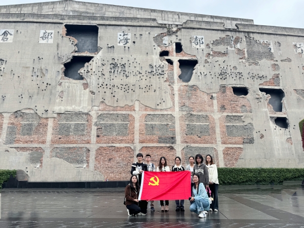 在四行仓库,经管学子们回顾了1937年那场英勇无畏的保卫战。四行仓库的每一块砖石,每一处弹痕,都在无声地讲述着八百壮士的英勇事迹,视觉的冲击与震撼激发了同学们的爱国热情和责任担当。
